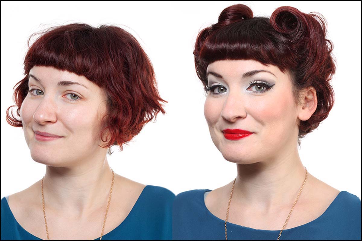 Après le maquillage et la coiffure rétro, l'émotion est déjà forte, une fois habillée, c'est une vrai transformation, un choc !